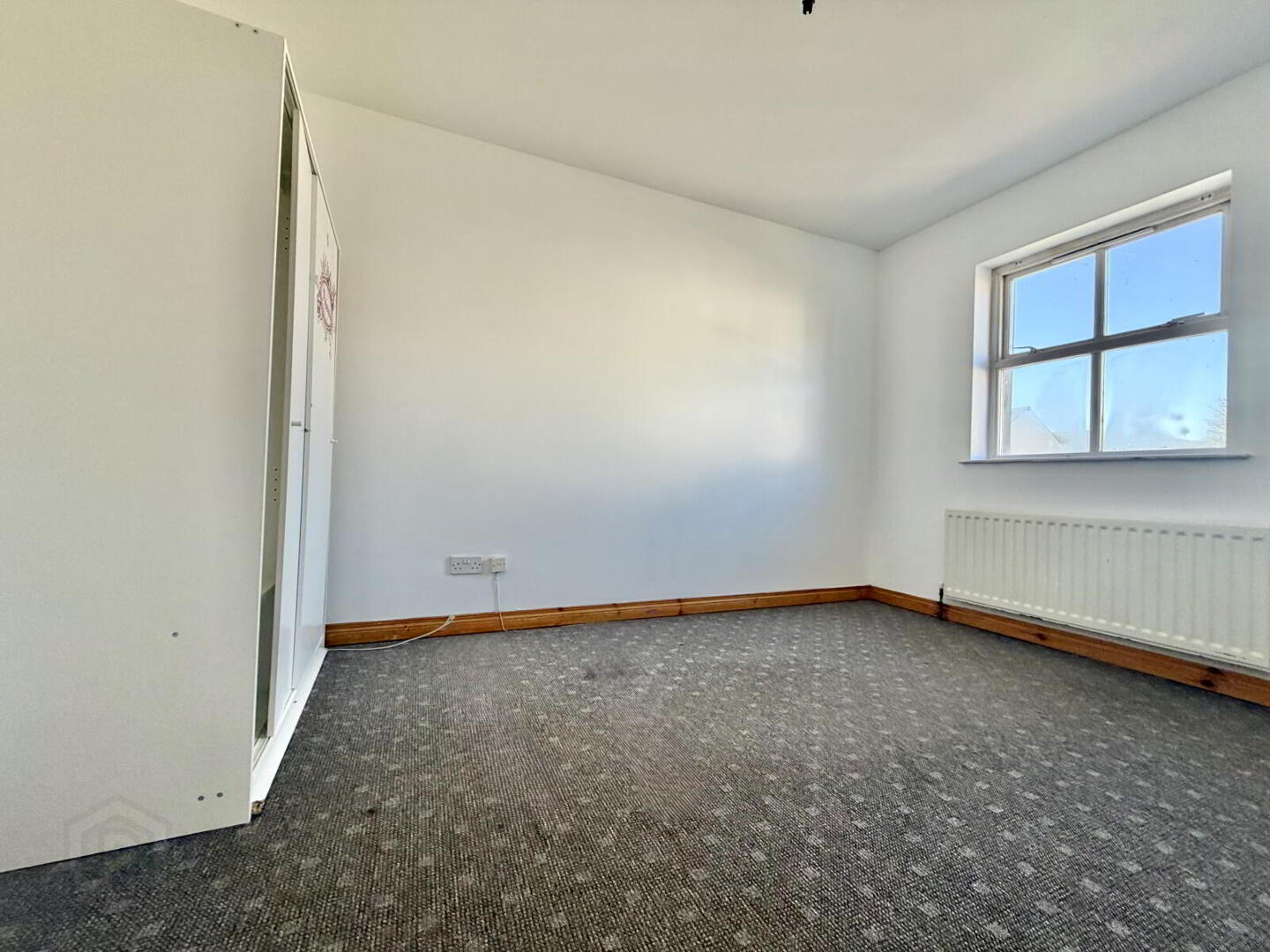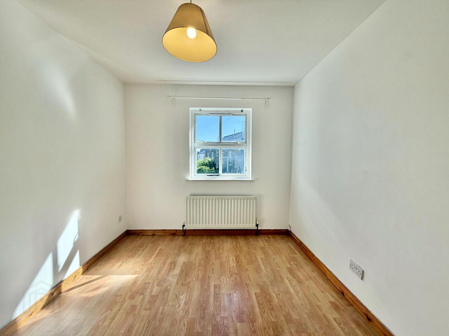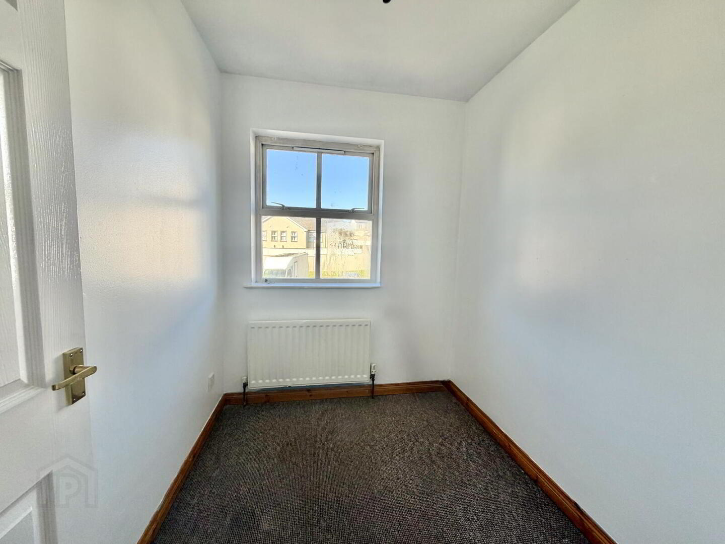 Compact room with single radiator, suitable for bedroom, nursery or home office.