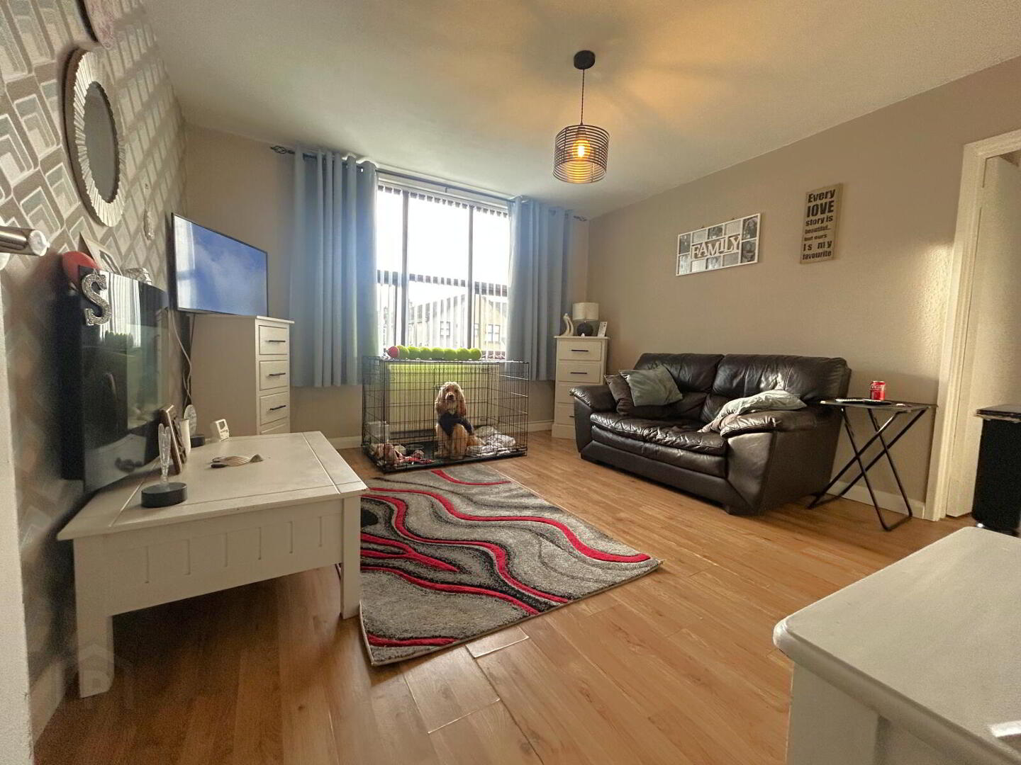A bright and comfortable living space finished with laminate flooring and heated by a double radiator, making it ideal for both everyday living and entertaining.