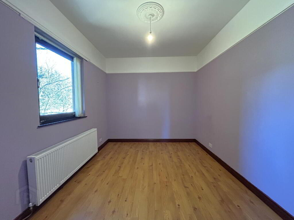 Spacious bedroom with laminate wood-effect flooring and a double radiator, offering comfortable accommodation for family or guests.